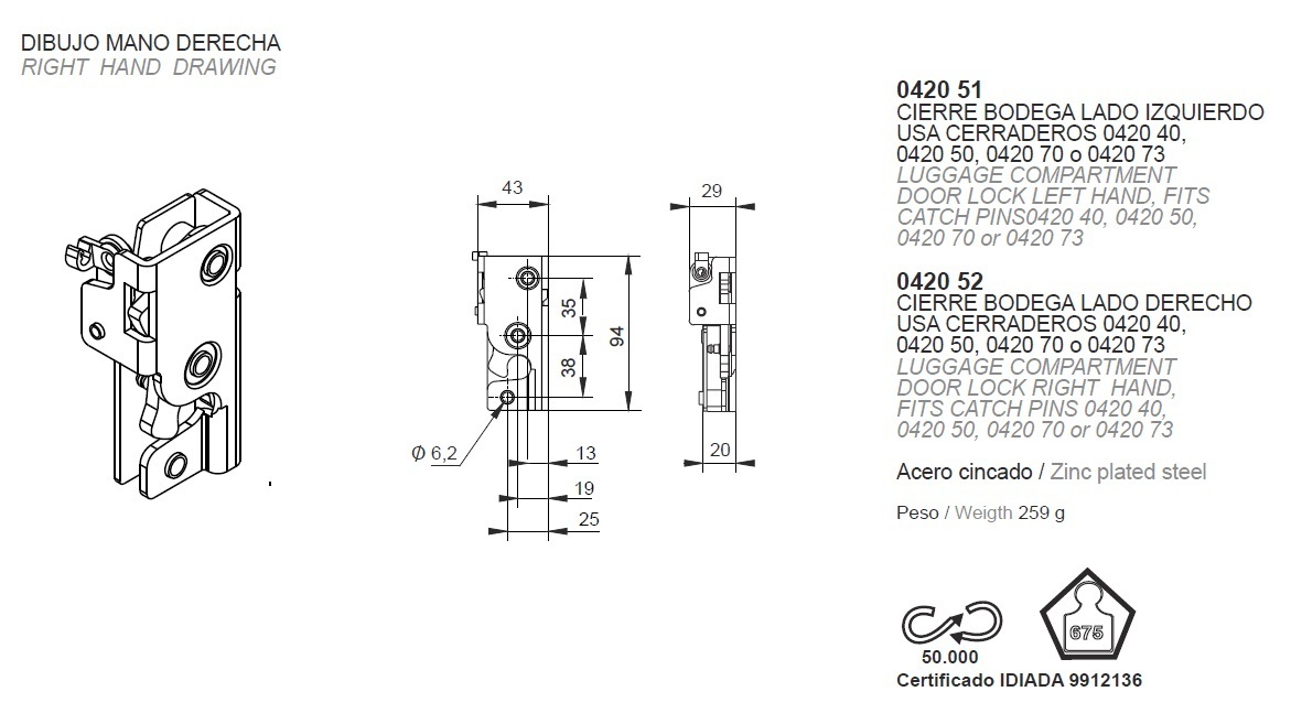 REF: 042052 CIERRE BODEGA LADO IZQUIERDO USA CERRADEROS 0420XX