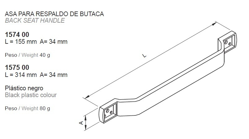 ref: 157400 asa para respaldo de butaca 155mm